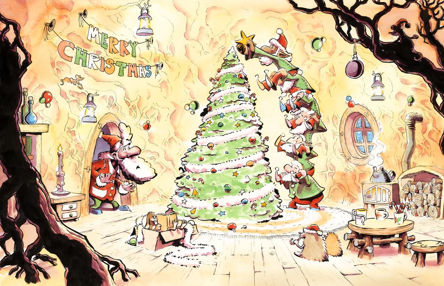 The idea came to me while setting up the Chrismas tree with my own kids, their excitment and the mess they made while trying to hang decorations to some of the higher branches, way out of their reach.